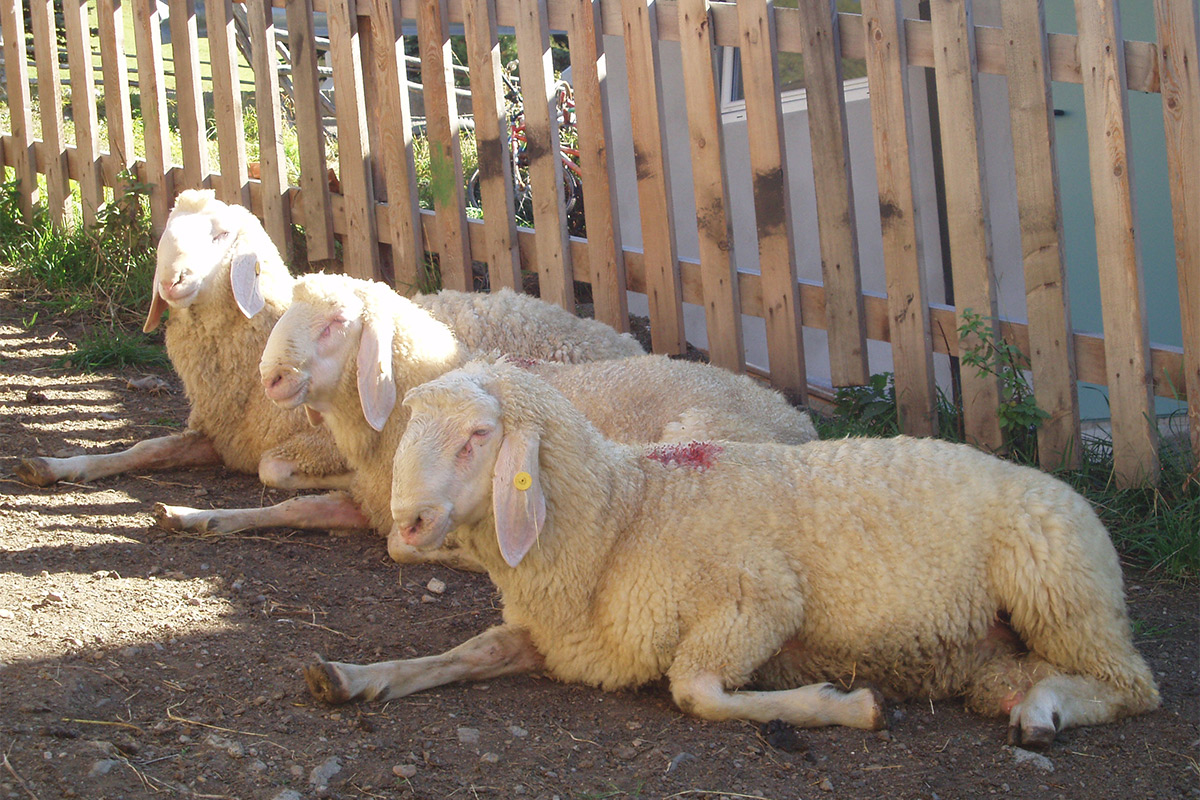 Wir besitzen 70 Schafe mit Lämmern, die im Frühjahr ins Hochgebirge kommen. Auch 70 Ziegen gehören zum Hof. Diese bevorzugen karge Berghänge zum Weiden und bleiben bis zum Wintereinbruch dort. Unsere 26 Kühe, 15 Jungrinder und 5 Kälber gehören nicht zu dem für's Schnalstal typischen Grauvieh, sondern zur Braunvieh-Rasse und hat sich dem Klima hervorragend angepasst.